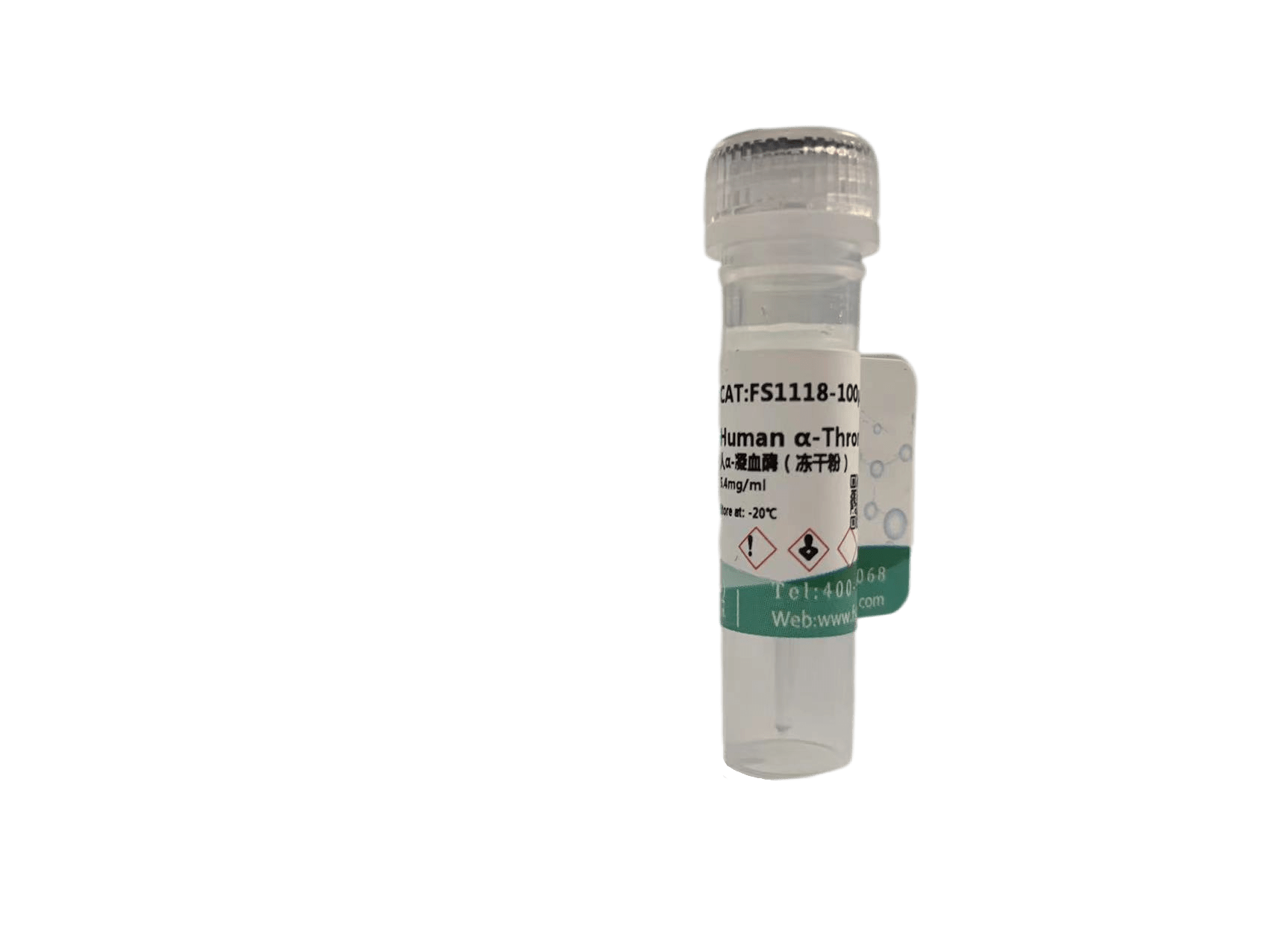 本品從純化的人凝血酶原水解活化而來,以凍干粉形式供應,溶于水配制成儲存液(1mg/ml)。產品經凝血酶特異性的凝血實驗檢測酶活。