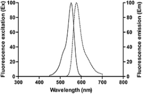 5-3. 用熒光酶標儀或熒光分光光度計檢測:混勻后直接用熒光分光光度計進行時間掃描(time scan),激發波長為550nm,發射波長為575nm。如果使用熒光酶標儀,可在軟件中把檢測對象設置為Rhodamine或Texas Red,即可以檢測TMRE。另外,也可以參考下面步驟6中的波長設置進行熒光檢測。