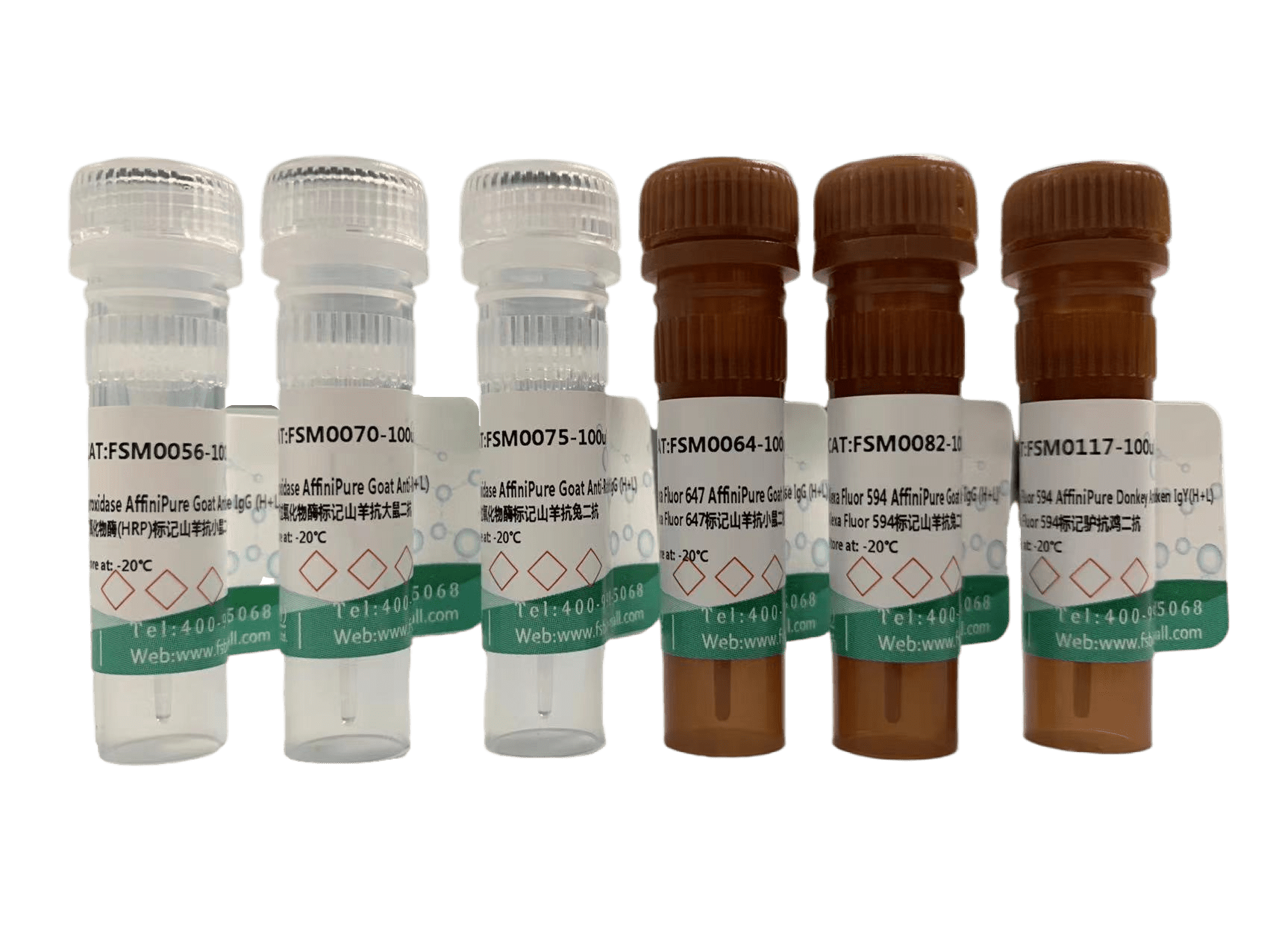 本品是由Cy5標記的山羊抗兔IgGH+L),使用抗原偶聯的瓊脂糖微珠從山羊抗血清內親和色譜純化所得。免疫電泳和/ELISA法檢測顯示本品特異性結合完整的兔IgG分子,也會與其他兔免疫球蛋白的輕鏈結合??赡軙c其他物種免疫球蛋白發生交叉反應,但不會識別非免疫球蛋白類的血清蛋白。